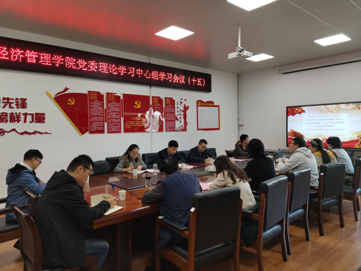 学院领导班子、党委理论学习中心组成员、党支部书记及管科第一学生党支部成员参加会议。