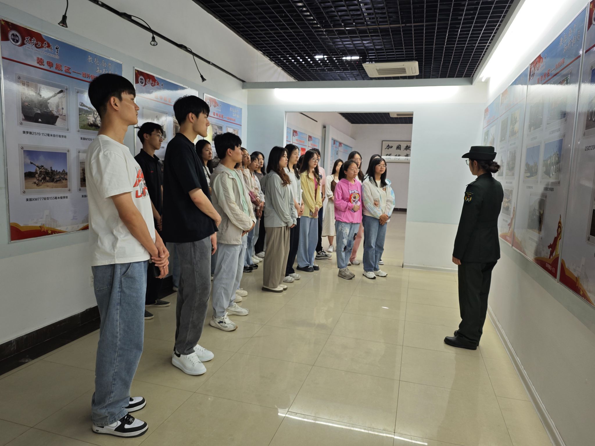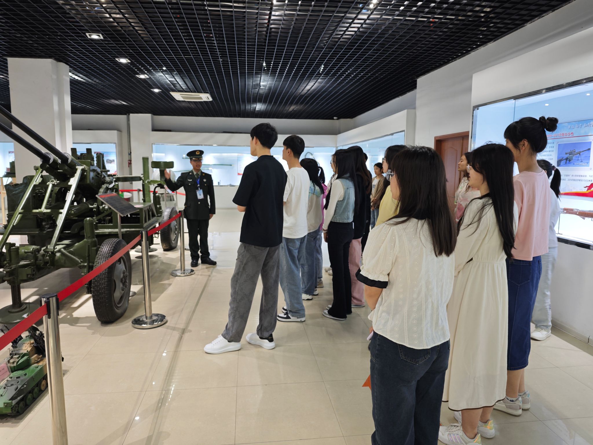 兵器馆内,工作人员详细介绍了武器装备的种类、性能、原理和制造过程,一块块展板、一张张图片仿佛将历史重现,一件件兵器模型栩栩如生,仿佛在诉说着它们背后的历史故事。从手枪到机枪、从装甲车到舰船、从火炮到坦克,一代又一代兵器的更替,使大家充分了解到兵器制造工人在那么艰苦的条件下生产出如此先进的兵器是怀揣着多么深厚的爱国情怀,感受到了科技的进步和国家军事的发展。