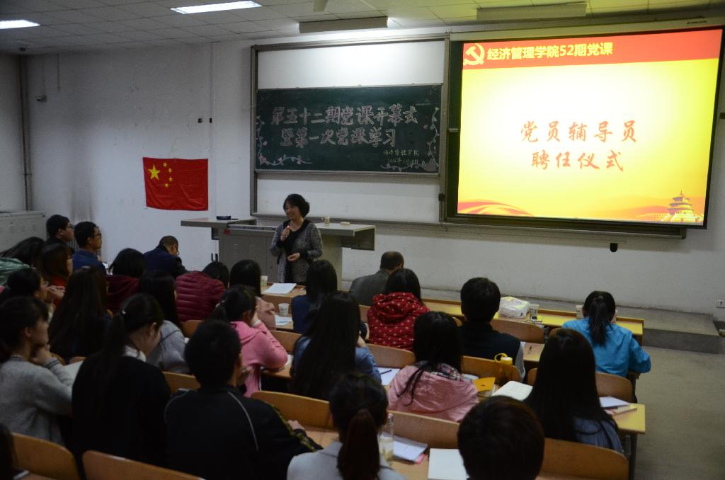开学典礼在激昂的国歌声中开始,首先由信管学生支部书记侯老师宣读了党课要求,对在场的党课学员提出了在考勤、学习、思想上细致且严格的要求。在回顾了往期党课历程后,往期优秀学员代表进行了发言,并对新一届学员进行了鼓励。之后,本届党校学员代表进行了发言,并代表本届学员们表达了上好党课的坚定决心。接着,两位书记向党员辅导员们颁发了聘书,并希望党员辅导员们履行好党员职责,做好党员辅导员工作。最后,党委书记曲敏老师上台致辞。她针对大学生上党课环节的三个方面---“是什么,为什么,怎么做”为学员们进行了讲解,并对本届学员表达了期许和鼓励。