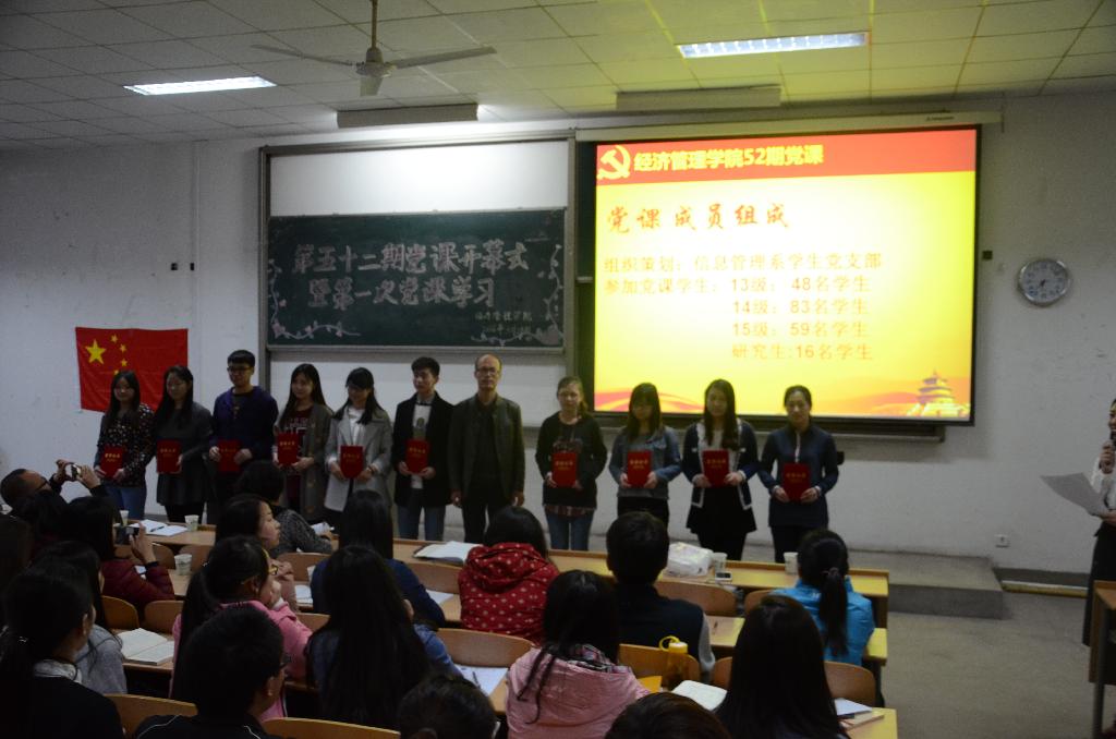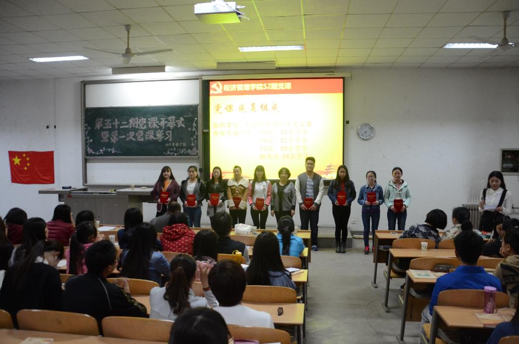 为了进一步提高同学们的党政素质,加深同学们对党的精神的认识与理解,激发同学们爱国,爱党的热情,kaiyun官网于3月28日晚上6点20分在教3―115举行了经管学院第五十二期党课培训开学典礼与第一次的党课培训。出席此次典礼的有党委书记曲敏、党委副书记程新峰,团委书记冯川川,以及各个学生支部书记。第五十二期全体党课学员及党员辅导员参加此次会议。