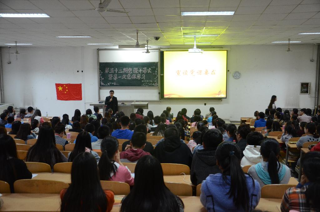 典礼结束之后,又翻开了第一次党课培训的篇章;程书记为同学们讲授了党课的第一讲——“辉煌的历程,伟大的篇章”他详细的讲述,清晰的展示,以及妙趣横生的语言使同学们受益匪浅。整个过程井然有序,掌声此起彼伏。