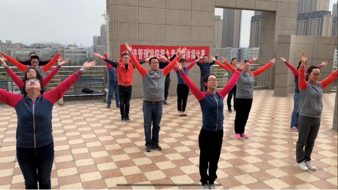 学院的比赛安排通知一下发,老师们摩拳擦掌,各自进行视频学习;工会小组长积极组织统一合练。在比赛视频录制现场,不论是刚入校的新教师,还是资深老教授;不论是普通教师,还是学院领导,大家都精神抖擞,拿出最好的表现。虽然偶尔有动作失误,但老师们积极的心态,饱满的激情,体现出经管学院的精神面貌。短短四、五分钟的广播操让大家身体活动起来,精神放松下来,干劲鼓舞起来!