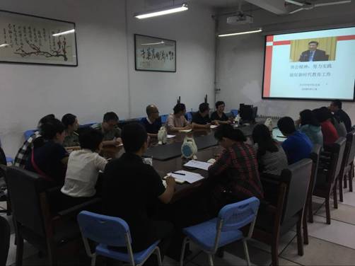 曹玉玲书记首先为大家明确了习近平总书记讲话内容的核心,习近平总书记以“九个坚持”论述深化了我们党对教育事业的规律性认识,他提出了“教育是国之大计,党之大计”“培养什么人是教育的首要问题”等重要论述。其次曹玉玲书记用“9个要6个下功夫”准确系统的阐述了我们应该如何全面的培养学生,尤其是要在学生的理想信念上下功夫,力求能从根本上育人;她指出我们只有把立德树人融入整个教学环节与领域,树立正确的评价导向,真正热爱教育,淡泊名利才能培养出合格的接班人。最后曹玉玲书记总结道:教师是人类灵魂的工程师,人类文明的传承者,责任重大,我们必须爱惜自己的职业,严格要求自己,不断完善自己,才能真正胜任教师这一岗位。