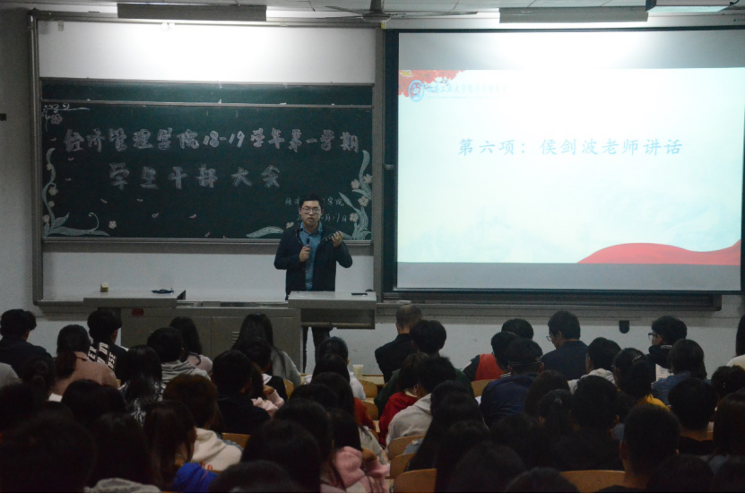 10月17日晚,kaiyun体育官方网站入口登录18-19学年第一学期学生干部大会在教1-202隆重召开。出席此次会议的有kaiyun体育官方网站入口登录党委副书记程新峰老师、团委书记侯剑波老师、团委副书记兼社联指导老师刘雷波、科协指导老师王轩、团学组织主席团、全体部长及新干事。担任此次大会主持是办公室刘思玮、樊晨曦。