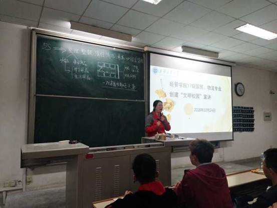 2018年10月24日下午,kaiyun体育官方网站入口登录曲峡老师为17级国贸、物流专业学生在教2-305举办了创建“文明校园”的宣讲会。