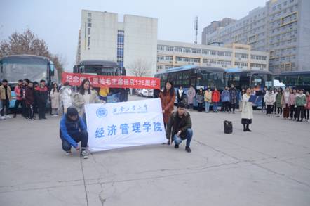 一首《沁园春·雪》,本次活动拉开了序幕。“俱往矣,数风流人物,还看今朝……”,今天,我们缅怀伟人毛主席,既要怀念他波澜壮阔的一生,也不能忘记他留给我们的宝贵精神财富。随着朗诵结束,音乐节奏加快,125名同学跟着音乐节拍开始快闪舞蹈,一首《洗衣歌》,让同学们回到了那个光荣岁月。从经纬广场到博文餐厅,他们的表演引得诸多同学驻足观看,赢得了同学们的拍手称赞。