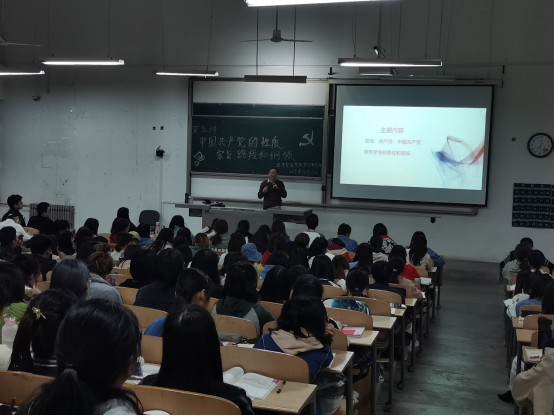 本次主题党课,何春水老师从中国共产党的性质、宗旨,党的指路线和纲领三个方面展开,围绕党的性质、宗旨、路线和纲领在不同历史时期的转变、曲折发展进行了讲解。首先,何老师从政党入手,以洋人和国人对政党的认识为引入,剖析了政党的性质,以工业革命为转折点,通过马克思主义对政党的阐述解释了政党这个概念的产生。进而指出了中国共产党的先进性和阶级性,并从党的阶级性和先进性、党的地位和作用等方面,对同学们多角度深层次地论证了中国共产党是一个全心全意为人民服务的政党。随后,何老师生动形象地分析了达尔文主义中“物竞天择,适者生存”理论中过于强调强者地位的片面性和涉及种族歧视的不适用性,得出了只有合适的政党和适合国情发展的道路才能引领国家更好更快的发展。对于中国来说,这个政党应运而生,就是中国共产党,而我们要走的道路就是共产主义道路。最后,何老师指出,当代青年大学生应该树立理想、努力学习、勇于奉献,以此践行党的宗旨,鼓励同学们自力更生,艰苦创业,才能更好地发展自己。