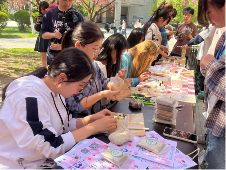 “雪沫乳花浮午盏,蓼茸蒿笋试春盘”。走进“樱下·茶话、食之·春韵”展台,感悟品茶之道,品味樱花美食,享受春天的美好。走进“映纸·抒春、春印·岁月”展台,同学们天马行空,向自然借点颜色,不一会儿,一幅栩栩如生、喷薄着盎然春意的精美作品映在眼前。