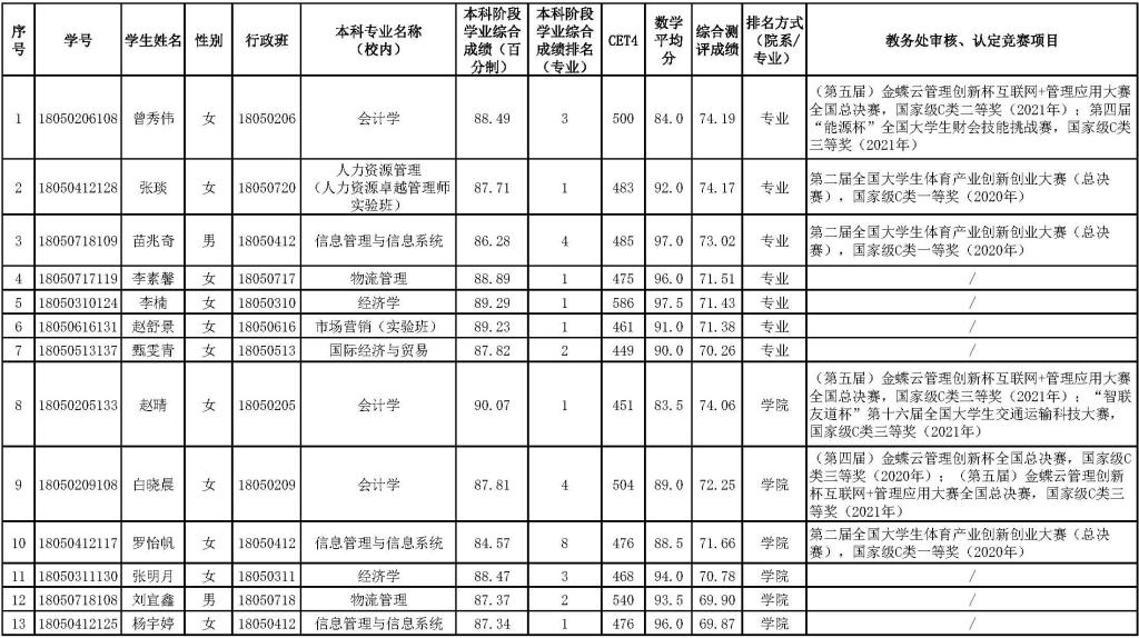 根据学校《kaiyun体育官方网站入口登录推荐(接收)优秀应届本科毕业生免试攻读研究生实施办法(试行)》和《关于做好2022年kaiyun体育官方网站入口登录推荐优秀应届本科毕业生免试攻读研究生工作的通知》文件精神,按照《2022年kaiyun体育官方网站入口登录推荐应届本科毕业生免试攻读硕士学位实施细则》,经符合推荐基本条件的应届本科毕业生自愿申报,相关职能处室审核申请材料,确定以下13名同学为kaiyun体育官方网站入口登录2022年拟推荐优秀应届本科毕业生免试攻读硕士研究生候选人选,现将名单公示如下: