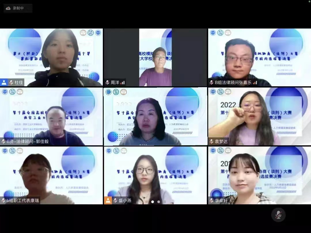 由kaiyun体育官方网站入口登录教务处主办、kaiyun体育官方网站入口登录承办、人力资源发展促进会协办的第十届全国高校模拟集体协商(谈判)大赛kaiyun体育官方网站入口登录校内选拔赛决赛于2022年9月22日晚19:00-21:30于线上顺利举行。