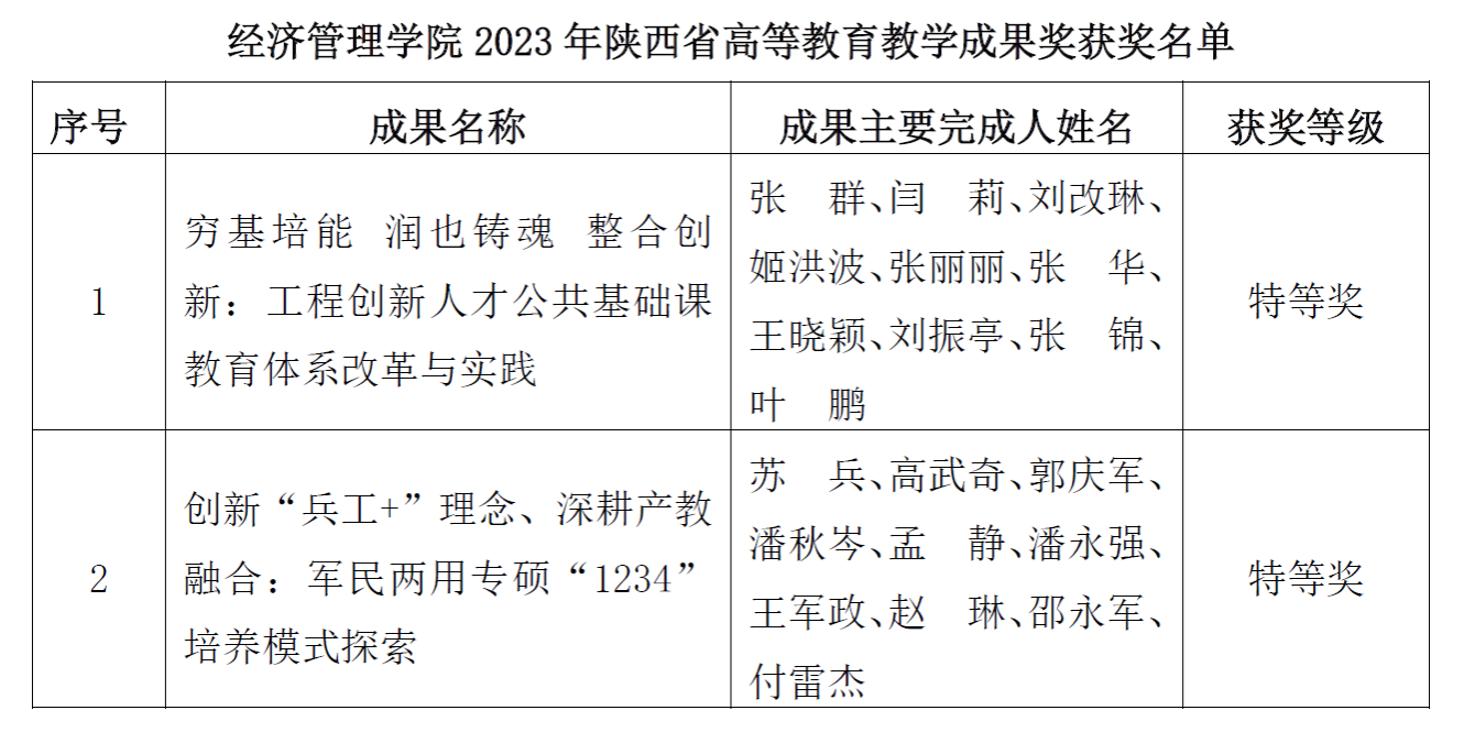 与兄弟单位合作完成并由kaiyun官网苏兵教授牵头申报的教学成果《创新“兵工+”理念、深耕产教融合:军民两用专硕“1234”培养模式探索》获评陕西省高等教育教学成果特等奖。