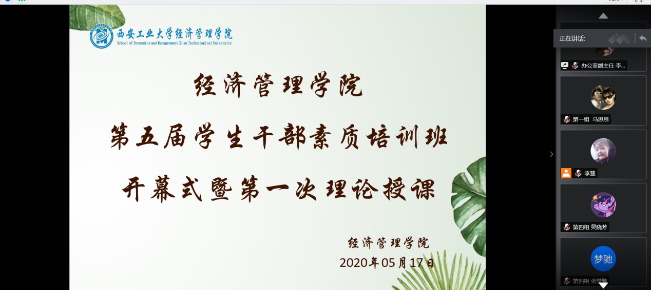 为提高学生干部综合素质,夯实干部队伍建设,2020年5月17日晚19:00,kaiyun体育官方网站入口登录于线上举办第五届学生干部素质培训班开幕式暨第一次理论授课。培训班共计64名学员一同参与,kaiyun体育官方网站入口登录团委书记许金鑫以及众团学组织干部参加本次开幕式。