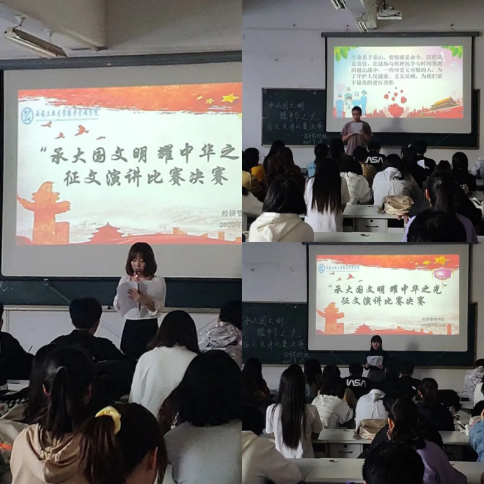 通过本次征文演讲比赛,不仅锻炼了经管学子的文学功底与历史底蕴,还在一定程度上增强了新时代青年的责任意识与民族自豪感。“少年强则国强”,相信这次活动的展开,新一代青年能努力做好时代的接班人,以昂扬的斗志投入到祖国建设之中,共同为国家的繁荣昌盛而奋斗!