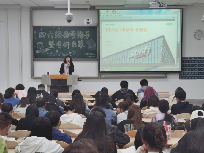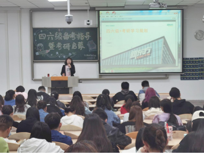 10月21日下午,kaiyun体育官方网站入口登录举办“四六级备考指导暨考研启蒙”讲座。此次讲座邀请了新东方著名讲师王乐娟与优秀学生代表李行进行讲授。讲座由夏雨欣主持。
