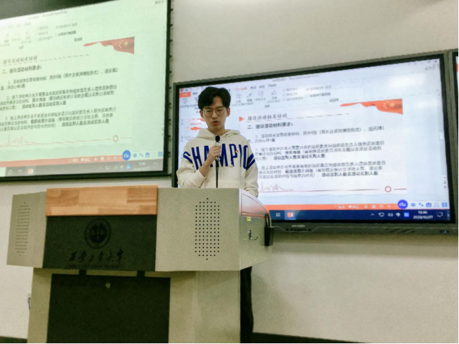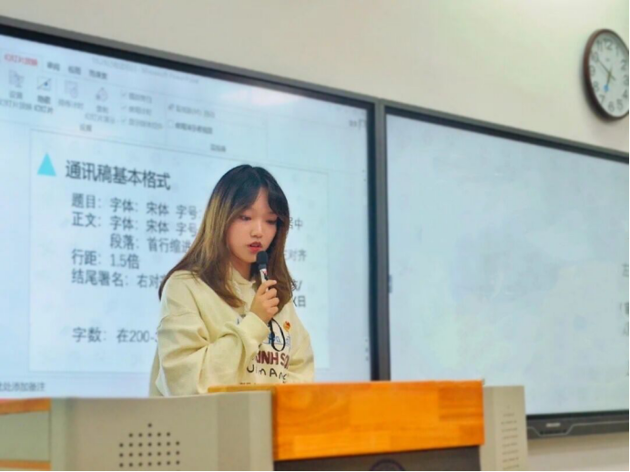 大会伊始,19050719团支部魏嘉博发言。魏嘉博表示,作为一名团干部,要具备创新、管理、宣传发动和组织领导能力,同时也将通过本次培训来提高自己的思想境界、工作能力及综合素质。紧接着,组织部温迪从职能介绍、团日活动开展要求及活动材料收缴要求三方面给各支部干部进行培训。其次,记者团徐一诺进行通讯稿的写作培训,分别阐述了通讯稿的格式、内容、照片及存放方式等相关要求。随后,青年志愿者协会夏维婷对第二课堂工作进行分析说明并答疑有关问题,使在座的各团干部更加清晰地了解工作内容及流程。最后,团委副书记卢红升号召各支部团干部积极发挥各自职能,响应相关政策变化,共同为kaiyun官网学生工作付诸努力,创造更美好的明天。