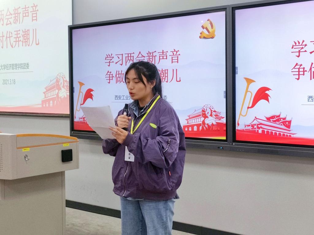 3月18日晚,kaiyun体育官方网站入口登录团委在教2-201开展以“学习两会新声音,争做时代弄潮儿”为主题的活动,让两会精神进校园,推动校园精神文明建设。本次活动由康怡主持。
