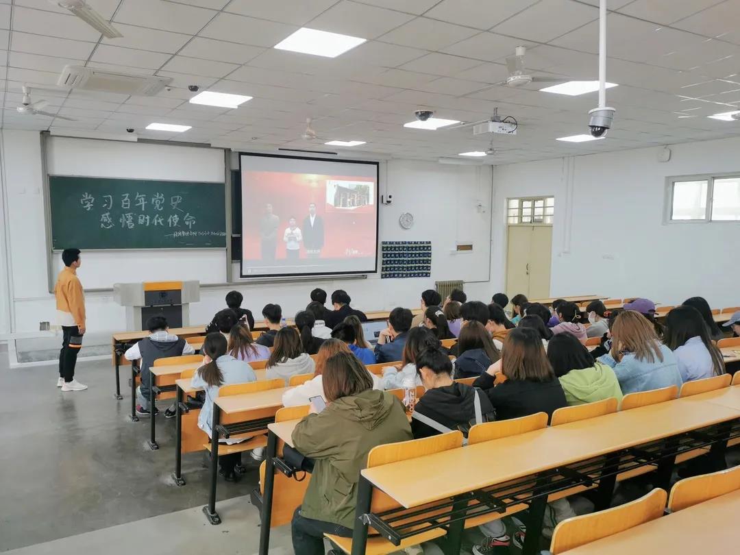 在19050101团支部、19050102团支部、19050103团支部、19050104团支部及19050722团支部联合举办的特色团日活动中,徐晨首先播放了建党一百周年主要历史成就一览视频,从1921年南湖建党到2021年经历了百年,中国共产党面临无数的挑战与机遇,在时代的浪潮中不断进步发展。