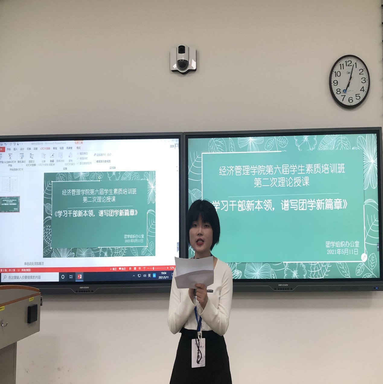 授课中,许老师从学生干部的定位问题,学生干部的成长问题以及学生干部的履职规则三个方面进行讲解。他表示作为学生干部在干好本职工作的同时,应不断提升自己的各方面能力,努力奋进,培养多维度思维模式。第一组刘梦菡也积极分享作为一名学生干部的感想,她认为虽然在工作中会遇到很多困难,但是在工作中更多获得的是提升自我的过程和奉献过后的快乐。