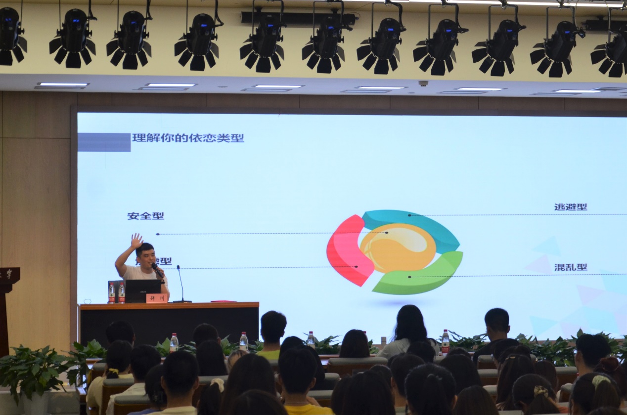 许川以“用积极心理学收获自己掌控的人生”为题,分别从“让我认识你、依恋类型、认识你的型、解释风格”四方面做讲述。
