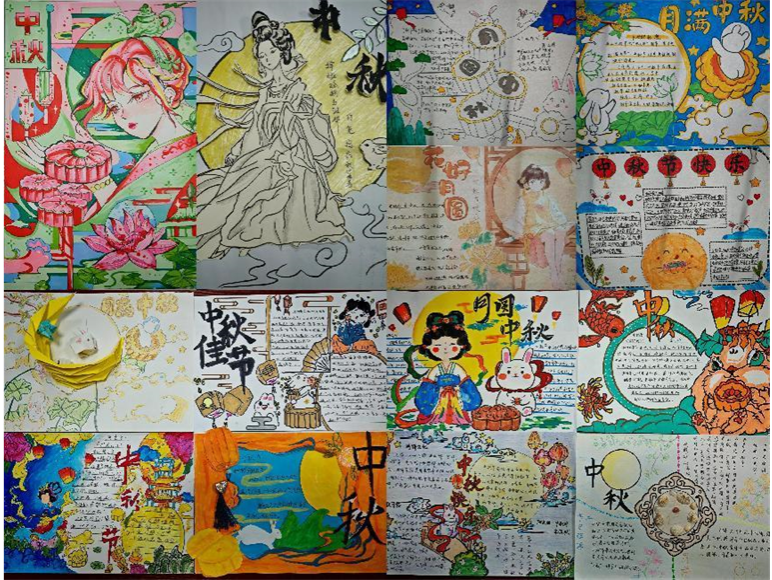 在手抄报活动中,同学们热情高涨,积极踊跃参加,共收到一百余份作品。在活动中,同学们积极收集有关中秋节的资料,深入了解传统习俗和寓意,并发挥创造力,通过图文的设计与排版,将他们的理解和想法融入手抄报作品中。手抄报作品丰富多样:有诗词歌赋,有传统知识,有名言典故,同时学生们运用丰富的色彩、美丽的插图和详实的文字介绍,生动地展现了中国传统节日的美丽和中国文化传承与发展的独特魅力。每一幅作品都充满了对中秋节的热爱和祝福。