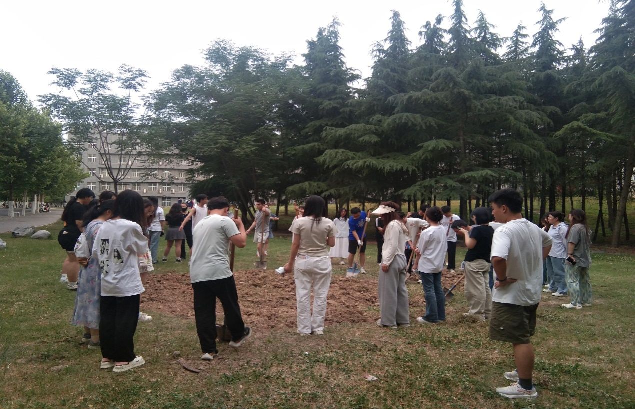 活动开始之前,张玉玲首先给同学们讲解了活动中的安全注意事项,然后带领同学们从挖土开始,让大家亲自动手体验劳动的快乐和成就感。本次活动以设计心型花坛和种植太阳花为内容,心型花坛的设计不仅展现了学生们对母校深深的热爱与感恩,也象征着他们心中对母校的感激之情。而亲手种植太阳花则寓意着他们感谢母校数年来对自己的培养,在毕业之际,能够坚韧勇敢面对未来,服务社会勇创佳绩,祝福母校像太阳花一样永远阳光灿烂。
